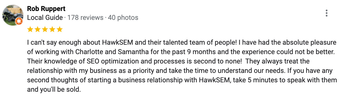 With HawkSEM, we offer transparent pricing, zero-hassle flat fees, and month-to-month services. There’s never any obligation to continue if you are unhappy with your campaign performance (although, we think you’ll be pretty happy.